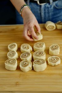 After baking your cinnamon rolls, it’s important to allow them to cool before cutting. This step ensures that the rolls are fully set and prevents them from becoming squished or falling apart when you slice into them.